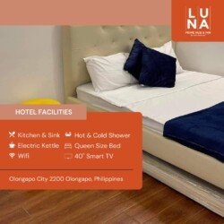 Welcome to Luna Prime Hub & Inn! Our Condotel is strategically located in the heart of Olongapo City, offering easy access to nearby destinations such as the Subic Bay Freeport Zone, Ocean Adventure, and the Inflatable Island.